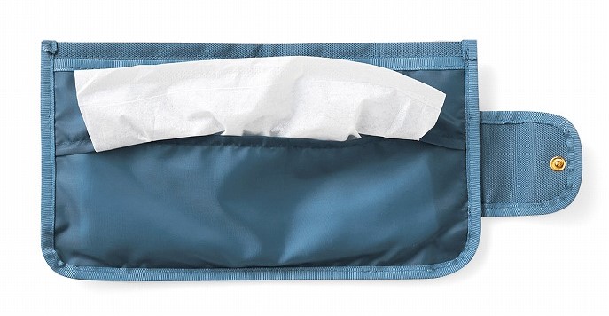 マスクとボックスティッシュを一緒に持ち運べて、さらにゴミポケットまで付いた花粉シーズンにもおすすめのティッシュポーチ。約20組分のボックスティッシュを詰めて、コンパクトに持ち運べるところが魅力です。