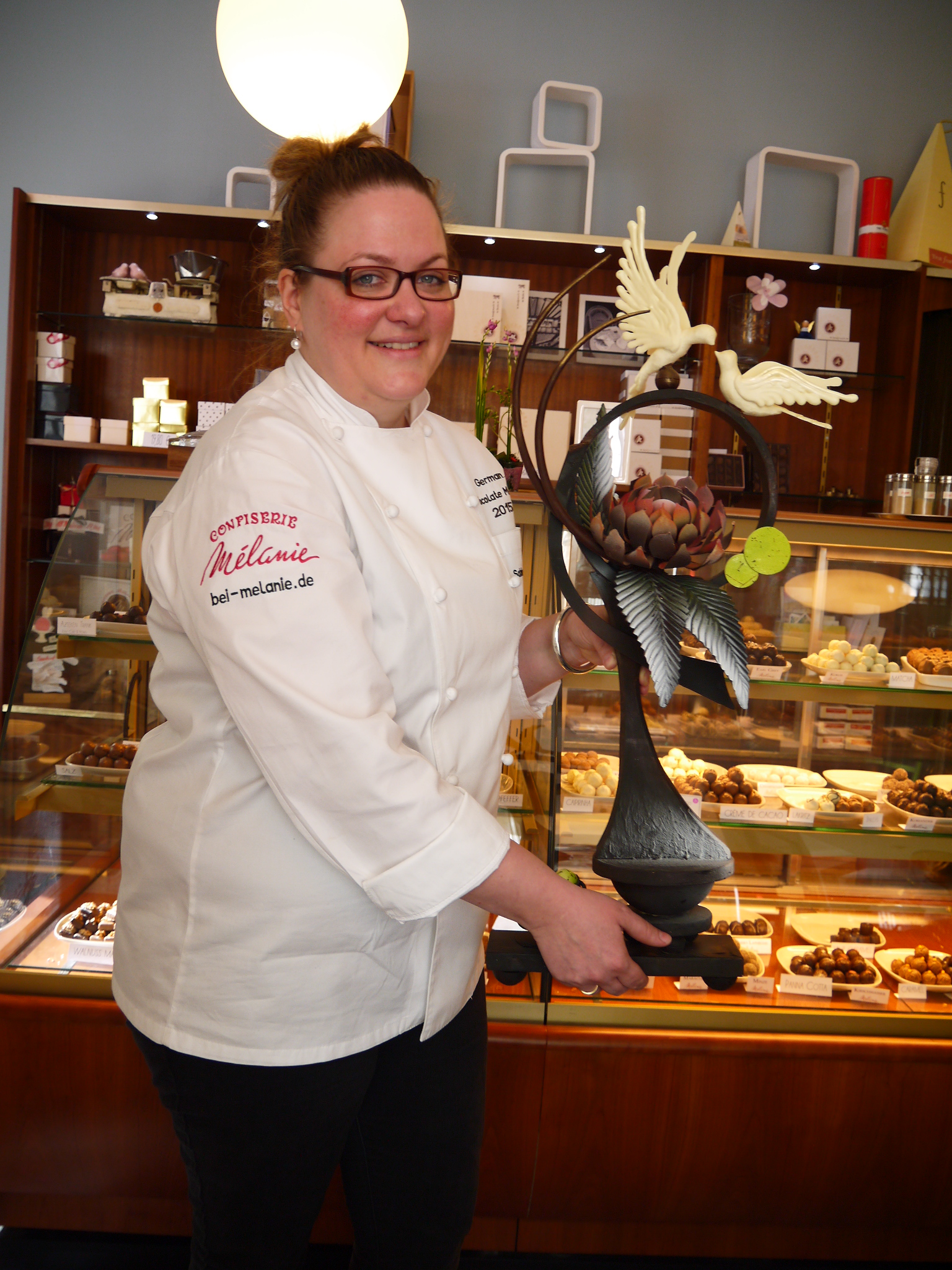 ここはベルリンの住宅地にあるショコラティエ、メラニーさんです。女性のショコラティエで、今、国際的なチョコレートの大会でドイツ代表として数々の賞にも輝く実力派です。