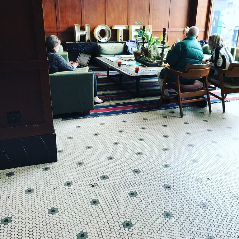 リノベーションして有名になっただけあって、近くでHOTELの「H」を見たら、古さが素敵でした。
