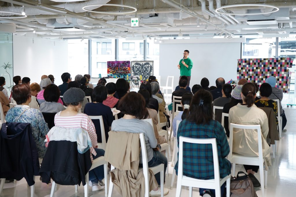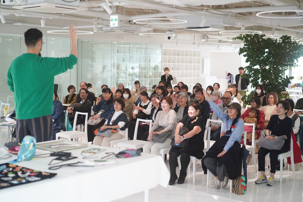 トークショーでは、お母さまである”キャシー中島さん”との心温まるエピソードや、手づくりを始めるきっかけとなった出来事、さらにフランス留学で得た学びについて洋輔さんが語り、洋輔さんのお人柄が伝わる素晴らしい時間となりました。また、NHK「すてきにハンドメイド」の収録裏話や制作秘話も披露され、会場は和やかな雰囲気に包まれながら、後半では洋輔さんの作品の紹介をしていただきました。細部までこだわり抜かれたデザインやアイデアに多くの方が魅了され、大いに盛り上がりました。