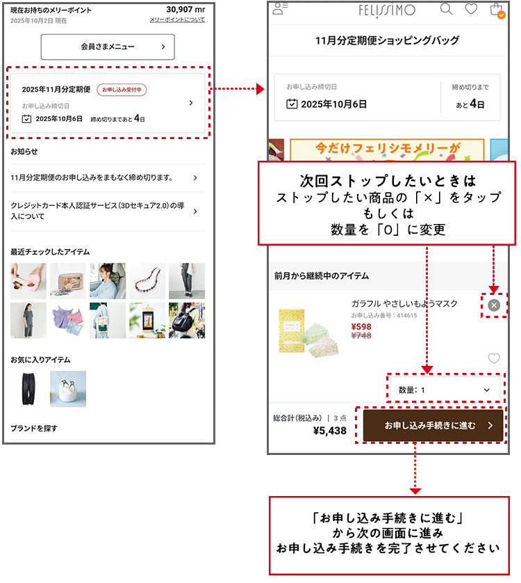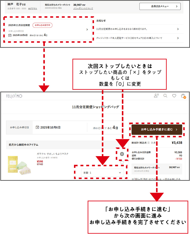 次回も同じ商品がほしい場合はお手続きは不要です。