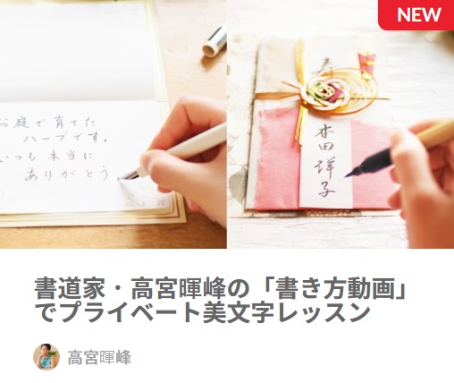 サロン名:書道家・高宮暉峰の「書き方動画」でプライベート美文字レッスン