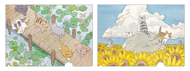 〈7月 睡蓮の池と猫〉〈8月 ひまわり畑と猫〉