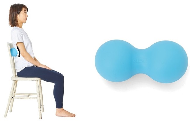 お仕事中でも気兼ねなく、凝りをほぐして癒やす新習慣。いすの背もたれと腰の間に挟んでギュギュッと刺激。自重を生かして広く深く、自分では指圧しにくいところも気持ちよくセルフケアできる、大きくて丸みのあるピーナッツ形がポイント。首・脚・足裏にも、座って、寝転んで好きな姿勢で使えます。