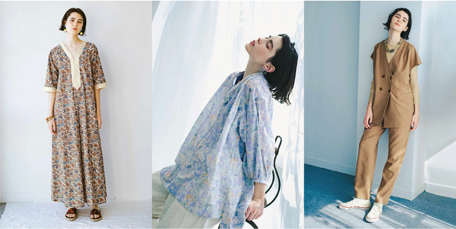 フェリシモが展開する、ヴィンテージのマインドを受け継ぐデイリーウェアファッションブランド「MEDE19F[メデ・ジュウキュウ]」は、夏の新作アイテムを発表、4月19日よりウェブ販売を行っています。Floatingをテーマに、揺らめく波紋。水滴の透明感。浮揚する心地とうつろう飾りに身をゆだねて。端々しい余韻が、ゆるやかに心を解き放つコレクションを展開しています。「水彩画ブラウス」や「ジレ風セットアップ」、フランス・アルザス地方の「ミュルーズ染織美術館」とのコラボレーションシリーズにも新しいパターンのプリントワンピースとブラウスが登場しています。MEDE19Fが提案するホームリラクシングアイテムにも新作のダブルガーゼパジャマが加わっています。新作コーデやアイテムの数々は、デジタルカタログのほか、公式サイトで見られます。