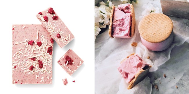 【8月】オーストラリアの「コールリバーファーム」はミルク系チョコ1位の人気で、NHKの番組でも紹介されたショコラティエです。ミルキーなラズベリー入りホワイトチョコのアイスに、フリーズドライのラズベリーの甘酸っぱさとローストココナツが超絶マッチした人気のベリーココナツチョコを合わせたアイスサンドです。