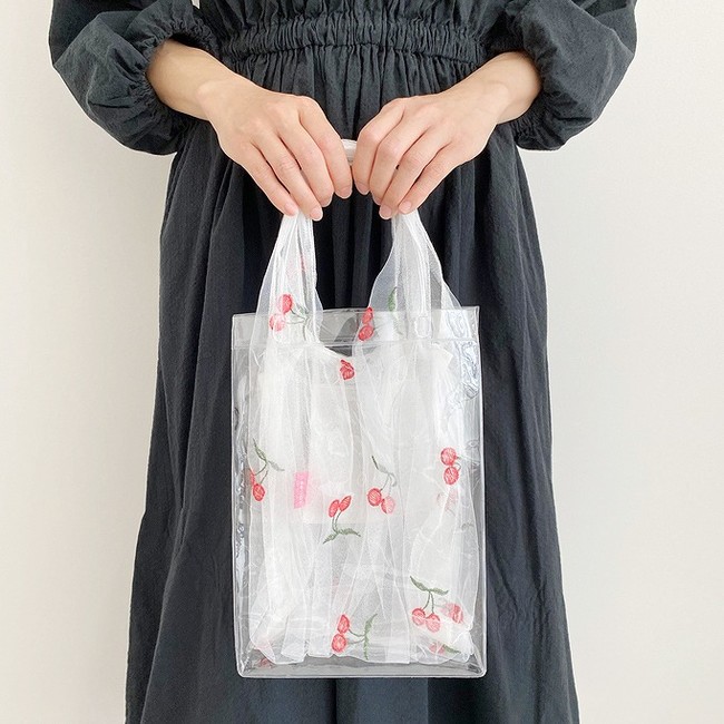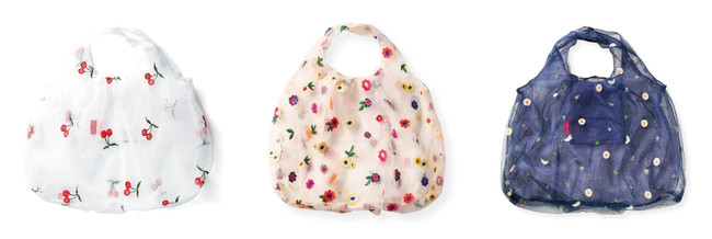 ふんわりと2枚重ねたチュールに刺しゅうを浮かべたちょっとイマドキ顔なプチバッグです。ころんと小さめだけど、ちょっとした買い物の荷物や、ハンカチ、ポーチなどが入るサイズ感。軽くてしわも気にならないから、小さくたたんで携帯すれば、パッと出すたびほめられそう。その日の気分でカラーを変えたり、忘れないようにあちこちに備えて置いたり、全部集めて使えばかわいく便利に。