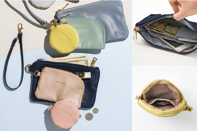 ポケットや仕切りで収納のしやすさを工夫した、3連ポーチセットです。ストラップでポーチをひとつにまとめられるので、バッグの持ち手に付けたり、必要なものだけ選んで付け替えられます。小ポーチにはかぎやコインを、中ポーチにはコスメやティッシュを、大ポーチにはスマホのほかカードやお札も入れてお財布使いもできます。集めてカスタマイズを楽しんで。