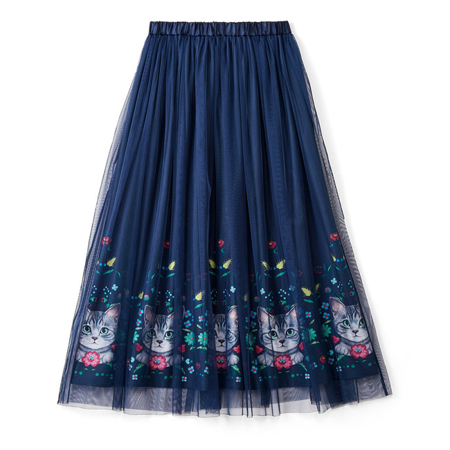 【NEW】サバトラ猫とお花のチュールスカート