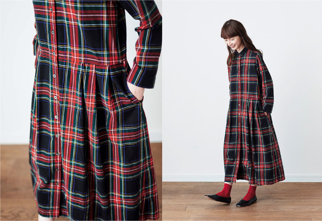 今回おふたりからリクエストいただいたのは、昔から愛され続けているタータンチェックを使ったワンピースとシャツ。チェックの柄を作るときはなるべくベーシックなパターンと色に仕上げました。