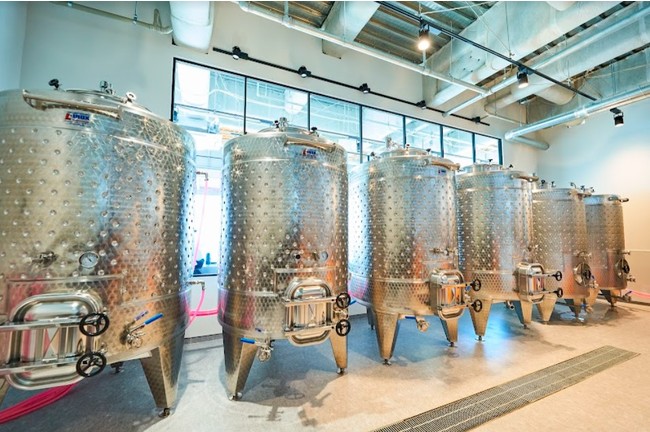 フェリシモ新社屋Stage Felissimo1階にて、都市型小規模ワイナリー「f winery[エフ ワイナリー]」の「スタンド」エリアが11月19日(金)15時に始まり、本格的に営業をオープンします。「f winery[エフ ワイナリー]」は、6月17日に神戸税務署より果実酒製造免許を取得し、6月22日よりワイン醸造を開始。「ユニークなワインを研究する都市型小規模ワイナリー」として土地やぶどうの種類に制約されないワイン造りを目指しています。6月に醸造を開始した最初のオリジナルのワインがオープンまでに2種類できあがり、そのワインを「スタンド」でソムリエおすすめのフードとのペアリングで楽しめます。そのほかにも、地元神戸で人気のおつまみやオリジナルカクテル・ソフトドリンクもあります。ワインの製造の様子はSNSで紹介し、定期的にできあがるワインが特別価格で試飲できます。