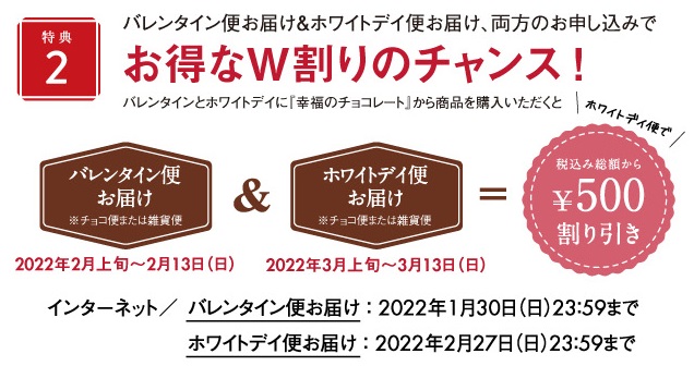 バレンタイン便とホワイトデイ便両方のお申し込みで、3月便から500円割引。