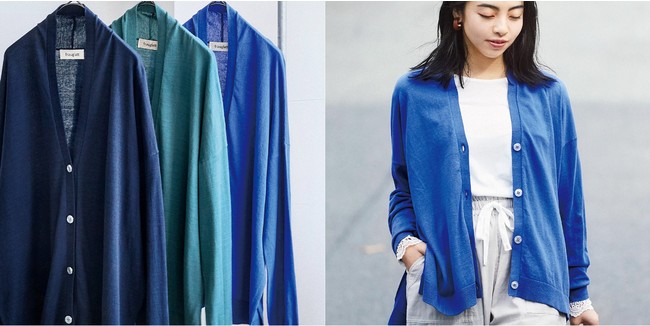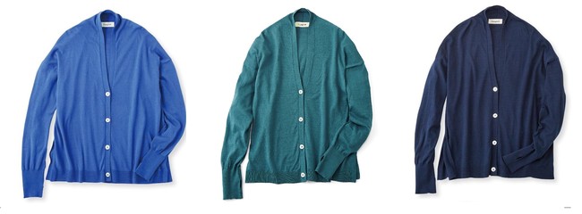 抗菌防臭加工をほどこした、綿100%のニットカーディガン、ブルーベース3色が手に入るセットです。シンプルなデザインかつ、中に着るものを選ばないゆったりシルエットなので、着まわしがききます。合わせやすく涼やかなカラーに、貝調ボタンが映えてすっきりとした印象に見えます。