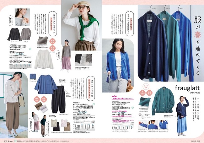 フェリシモが展開するファッションブランド「frauglatt[フラウグラット]」は、2022年春の新作を発表、2月22日よりウェブ販売を行っています。今春はゆったりシルエットで着まわしがきく綿100%のニットカーディガンやコクーンシルエットがかわいいダブルガーゼ生地のパンツ、上品見えするワッフルロングパーカーが登場しています。新作は、特設サイトやデジタルカタログでチェックできます。