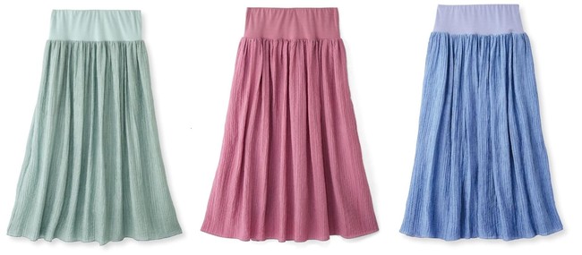 【NEW】フラウグラット ウエストらく設計♪ 大人ニュアンスカラーの薄軽ふんわり楊柳(ようりゅう)スカートの会