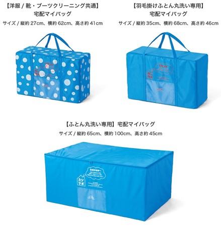 ※宅配マイバッグは、利用者専用で、カジサポの宅配クリーニングのレギュラーサービス(通常の宅配クリーニングメニュー)でも繰り返し使用でき、汚れたり、破れたりした場合は、無償で交換します。