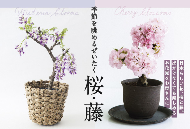 日本中に春を告げる花、桜を接ぎ木の技術で5年かけて育成した植木です。一定の寒さを経て気温が上がることで開花準備をするという、桜の特性を活かし、冷蔵庫で管理し、通常よりも長く休眠させて母の日に開花をあわせています。つぼみから開花を待つワクワクした時間が楽しめ、喜びを倍増し、「花が咲いたよ」とお母さんと会話まで広がるフラワーギフトとは毎年注目を集めています。