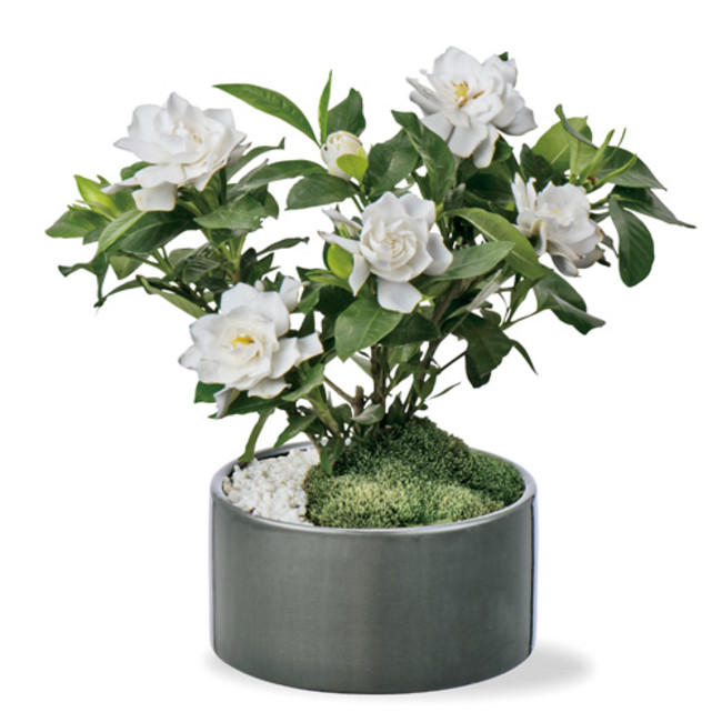 ・セット内容/くちなし「ガーデニア」4号、苔、化粧砂、鉢(陶器)