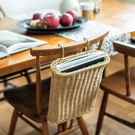 【天然素材風いすの背もたれに掛ける書類収納バスケット】