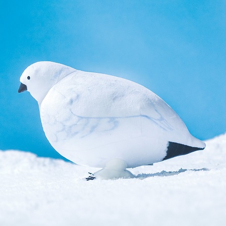 真っ白な姿やその芸術的な丸さに、ファンも多いとされるライチョウの実物大クッションです。