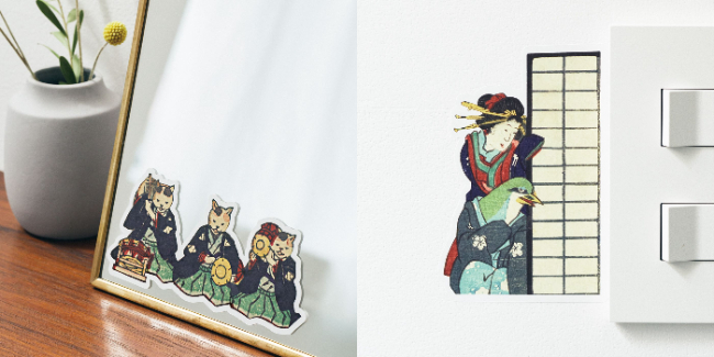 お部屋を飾るのはもちろん、オリジナルのノートを作ったり、愛用のパソコンに貼ったり、日常で目につくところに貼るだけで、浮世絵から生まれた彼らとの暮らしが楽しめるアイテムです。