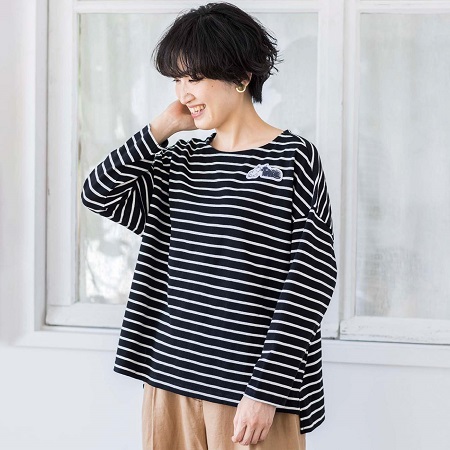 シルエットゆったりで大人顔 猫が遊ぶボーダートップスの会