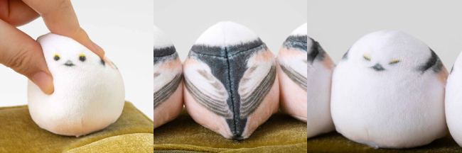 思わずむぎゅっとしたくなる、もっちり触感です。愛らしい後ろ姿も抜かりありません。それぞれの表情の違いにもこだわっています。