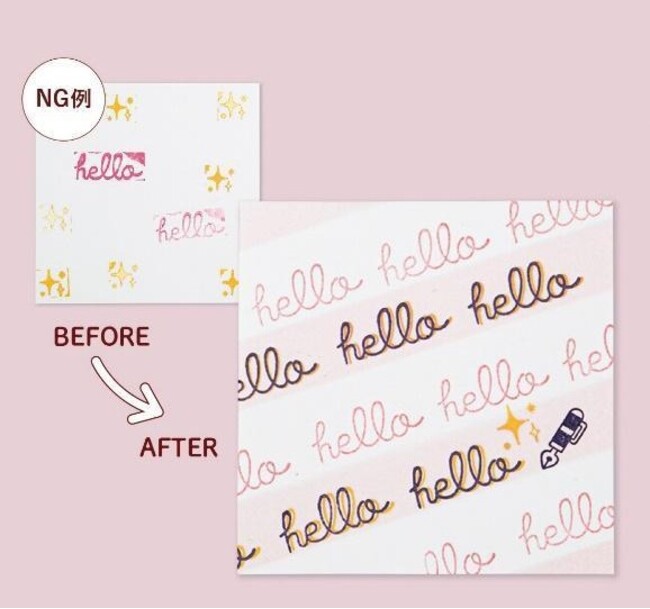 三角や雲、しましまなど一見シンプルに見える「サブはんこ」は、アレンジの救世主です。メインの柄の周りに押して華やかさをプラスしたり、サブはんこの柄を組み合わせて新しくモチーフを作ったりすることで、デコレーションの幅が広がります。使い方や組み合わせ次第で、ペーパーアイテムやはんこが一層輝きます。
