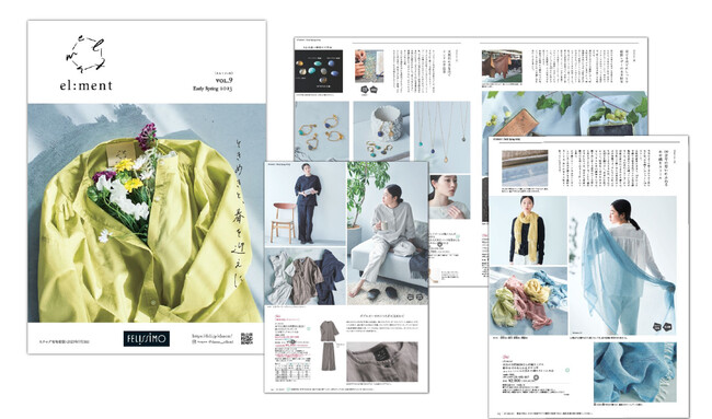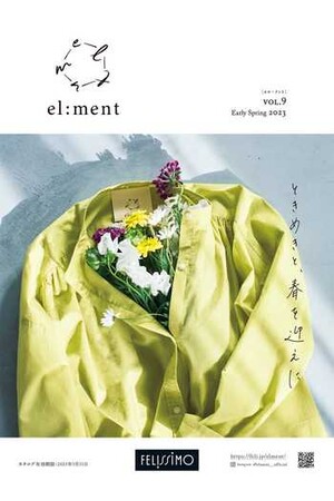 フェリシモが展開する、ファッション・雑貨ブランド「el:ment[エル:メント]」は、春の新作を発表。2月7日よりウェブ販売を行っています。笹田織物株式会社が織った「大判かや織りストール」や、部屋着にもパジャマにも活躍する「綿100%ダブルガーゼのパジャマ」、ぶどう建築レリーフ型押しの「ぺたんこがま口財布」などです。春のやさしい日なたの存在に気づき、心地よい風合いと巡り合えるアイテムがラインナップしています。新作は「el:ment」公式サイトやデジタルカタログでチェックできます。
