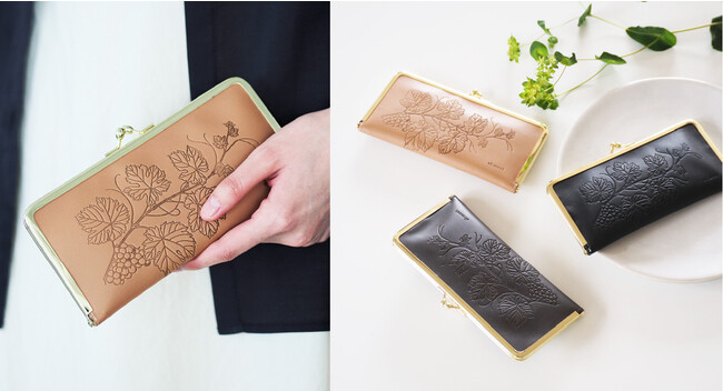 【NEW】el:ment 味わい育てる姫路レザー スリムで所作が美しく見えるぺたんこがま口財布〈ぶどう建築レリーフ型押し〉の会