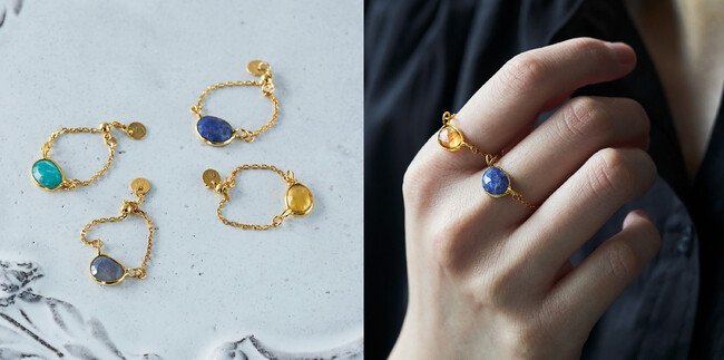 【NEW】el:ment インド ジャイプールの職人さんが手仕事で作る 魅力あふれる天然石パーツを愛(いと)おしむ 22金メッキチェーンリングの会