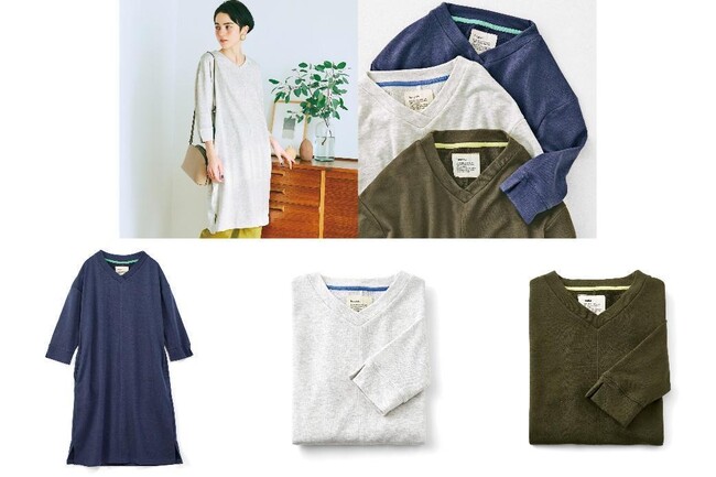 着まわし上手で、ロングシーズン活躍するチュニックワンピースです。からだのラインをひろいにくく、前後のセンター切り替えですらりとした縦長シルエットになっています。八分袖で家事の邪魔にならないのも魅力です。インナーと重ねたり、一枚で着たり、いろいろなコーデが楽しめます。