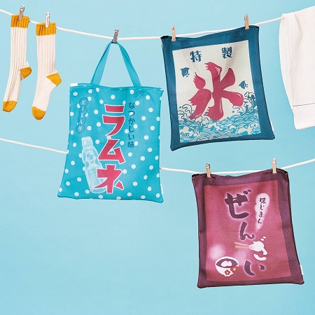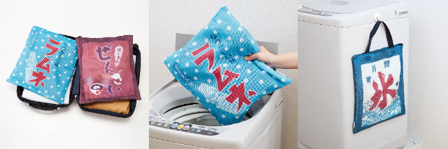 フェリシモが展開するユーモア雑貨ブランド「YOU+MORE!」は、「おうちが甘味処になる 軒先にたなびくレトロな旗の洗濯ネットの会」のウェブ販売を5月24日より開始しています。甘味処や出店の軒先にかかっているようなレトロなつり下げ旗の洗濯ネットです。デザインは、はためいているのを観光地や商店街などで一度は目にしたことのある、心ときめく人気のメニュー、〈ラムネ〉〈氷〉〈ぜんざい&おしるこ〉の3種類です。ベランダに干すだけで、おうちで風情のあるレトロな甘味処の気分を味わえます。ネットの上部には持ち手が付いているので、干す時の移動もらくちんです。ふだんは洗濯機まわりに掛けて家族や洗剤の種類で洗い物を分けたり、さりげなく飾ったりもできます。まるっと洗えるので、旅行のパッキングや、ジムの着替え入れ、子どもの汚れ物入れなど、ライフスタイルにあわせて使い方はいろいろです。レトロな雑貨や雰囲気が大好きな方におすすめの、使っても飾っても干しても大満足のアイテムです。