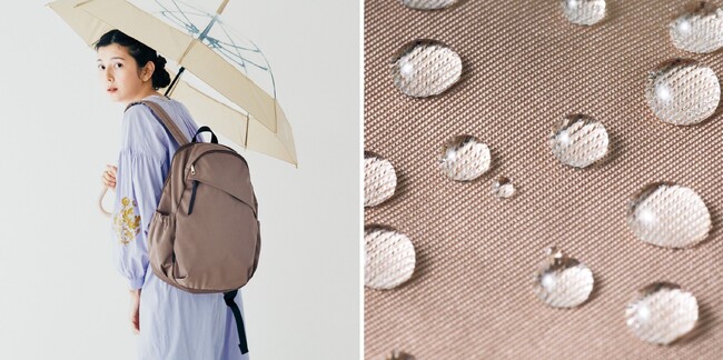 撥水素材を用いて雨をパラッとはじくリュックです。全9個のポケットは出し入れしやすく設計されています。ガバッと大きく開く形状は底までひと目で見渡せ、横からものが落ちにくくするためのまちも付いています。スマートなデザインと使い勝手の良さで、天気を問わず通勤からレジャーまで、日々の生活をサポートします。