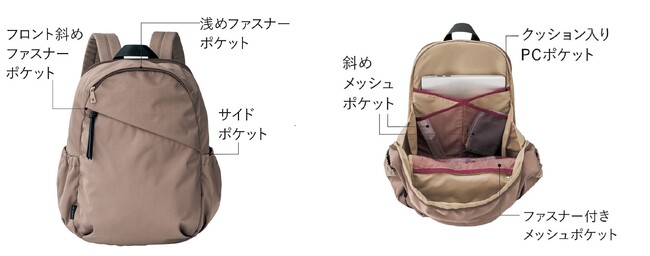 【NEW】ラミプリュス ガバッと開いて一目瞭然! 充実9ポケットの撥水スマートリュック〈パールココア〉