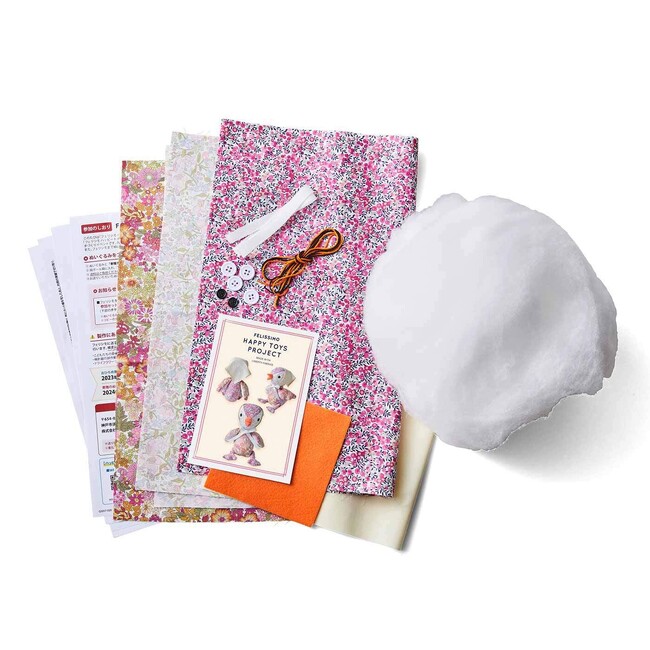 「リバティ・ファブリックス」は世界中にファンの多い、英国の伝統的なテキスタイルブランドです。優雅で繊細なデザインの生地で手芸愛好家からも知られています。担当プランナーが厳選した3種類の生地に、ボタンやリボン、わた、作り方説明書がセットされているので、自宅に届いたら気軽に作りはじめられます。