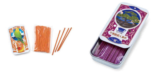 お香を使い終わったあとは、デザイン缶は小物入れとして活躍します。アクセサリーをしまったり、クリップ、付せん紙といった文房具入れとして学校・職場でお使いいただくのに最適です。