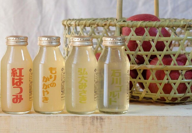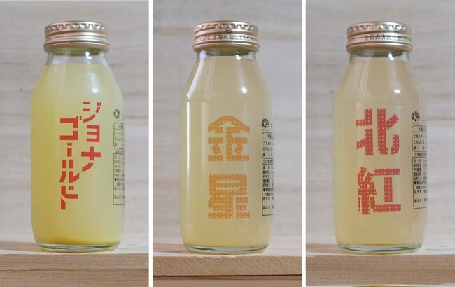 ・ジョナゴールド:すっきりとした酸味が特徴的な品種です。ぶどうのような香りと生果同様すっきりとした酸味が特徴のジュースになりました。