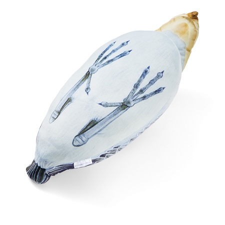 クッションの裏面には、ハシビロコウの折りたたまれた脚がリアルにデザインされています。どの角度から見てもハシビロコウの魅力が満載です。
