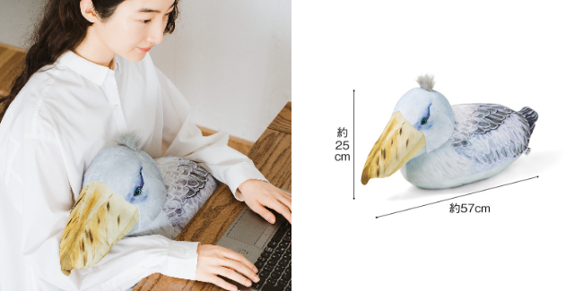 〈BIGサイズ〉は抱きしめがいのあるボリューム感◎。ソファやベッドに置いておいても、まるで本物のハシビロコウがそこにいるような存在感があるのが魅力。