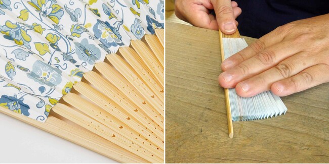 骨組みは竹の皮の部分を使用した「上質竹」です。丈夫でツヤとコシのある希少部位で、京都の職人の手により、ひとつひとつていねいに作られています。
