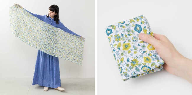 縦約170cm、横約55cmの大判サイズ。たためばコンパクトなのでバッグに常備しておくのに便利です。