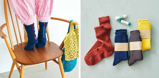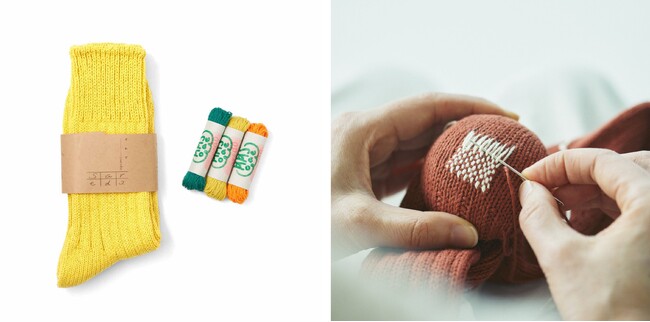 「落ちわた」から生まれたリサイクルコットン100%のくつしたに、繕ったり、アレンジしたりするための3色の糸がセットで届きます。くつしたは、奈良県の糸の卸会社「萱澤商店」から生まれたオリジナルブランドsaredo(-されど-)が提案する新定番「peli-tan(ペリタン)」からクチュリエプランナーが相性のよい4色をセレクト。くつしたと同色ひとつに、アクセントカラー2色の合計3色の糸がセットで届きます。全部集めると12色そろう 太番手で甘撚(あまよ)りのリサイクルコットンは、ダーニングだけでなく、編み物やラッピング、クラフトの材料としても幅広く使えます。もとは補修するための針仕事であるダーニングを、チャーミングな装飾としてポップに楽しむ。その経験から愛着が育ち、ものを大切にする「やさしい」気持ちにつながります。
