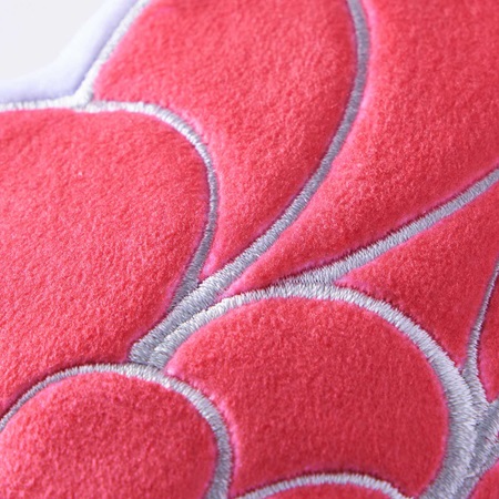 本物の金魚ねぷたではロウで描かれている立体的な模様を刺しゅうで再現。