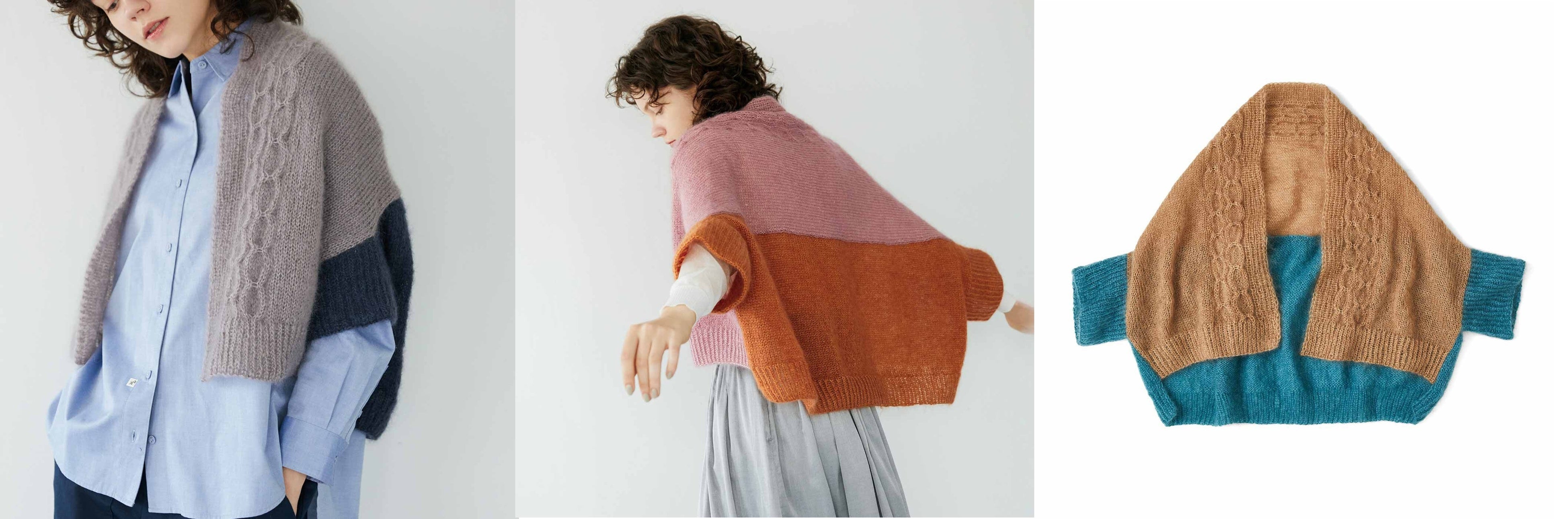 amuhibiの梅本さんがクチュリエのためにデザインしたのは、編み物好きなら一度は挑戦したいカーディガン。編み物初心者でも作りやすく、上品な仕上がりになるよう、細部にまでこだわりました。イギリスの毛糸の名門プレミアムヤーン「ROWAN」を代表するモヘア糸「キッドシルクヘイズ」を使用。芯にシルクを使っているので上品な光沢があり、毛の抜け落ちやへたりが少なく、長年愛用したいものを編むのに最適な毛糸。