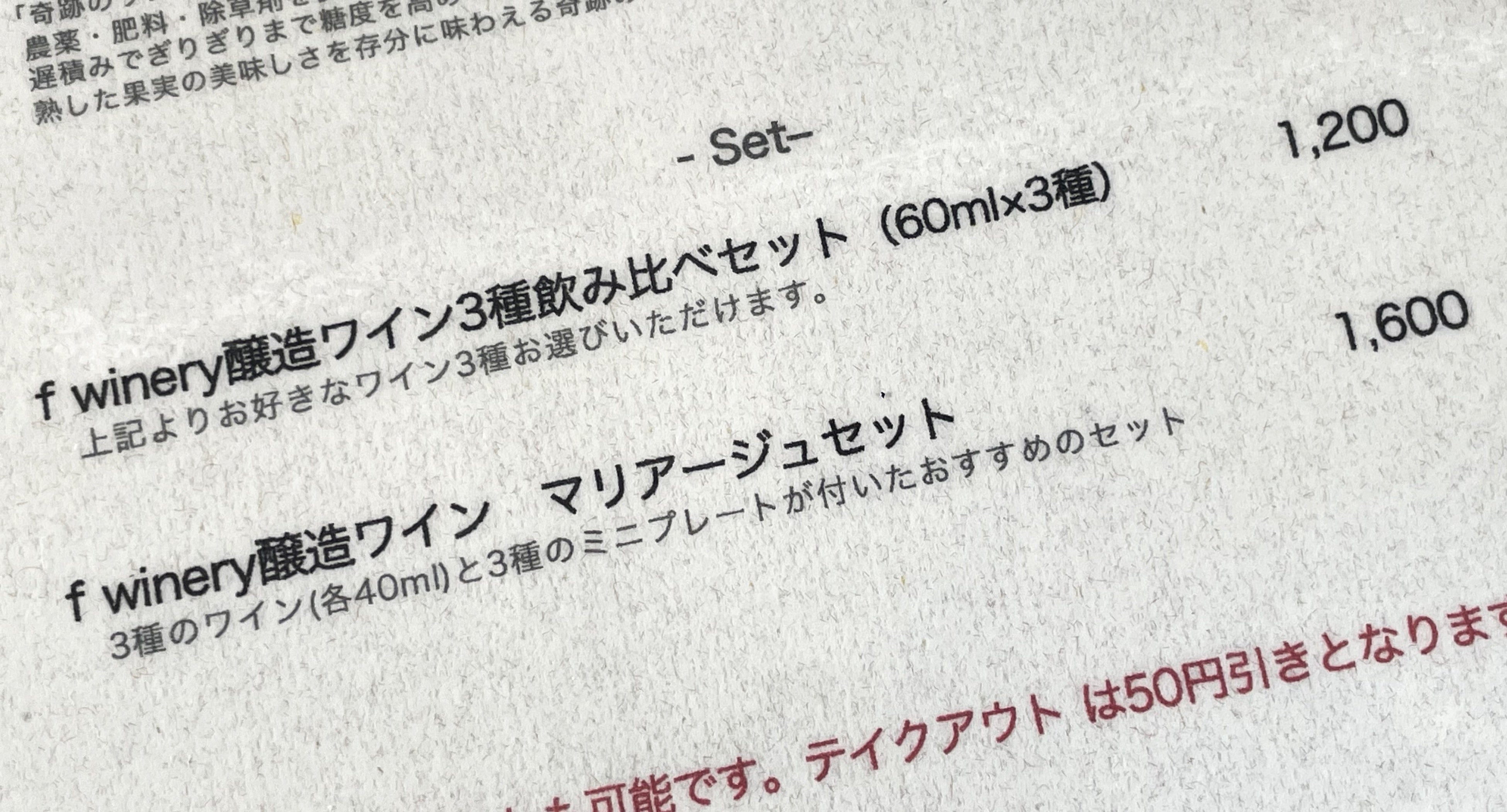 ◆新「試飲セット」のワインについて(コメント:f winery所属ソムリエ:中村圭緒)