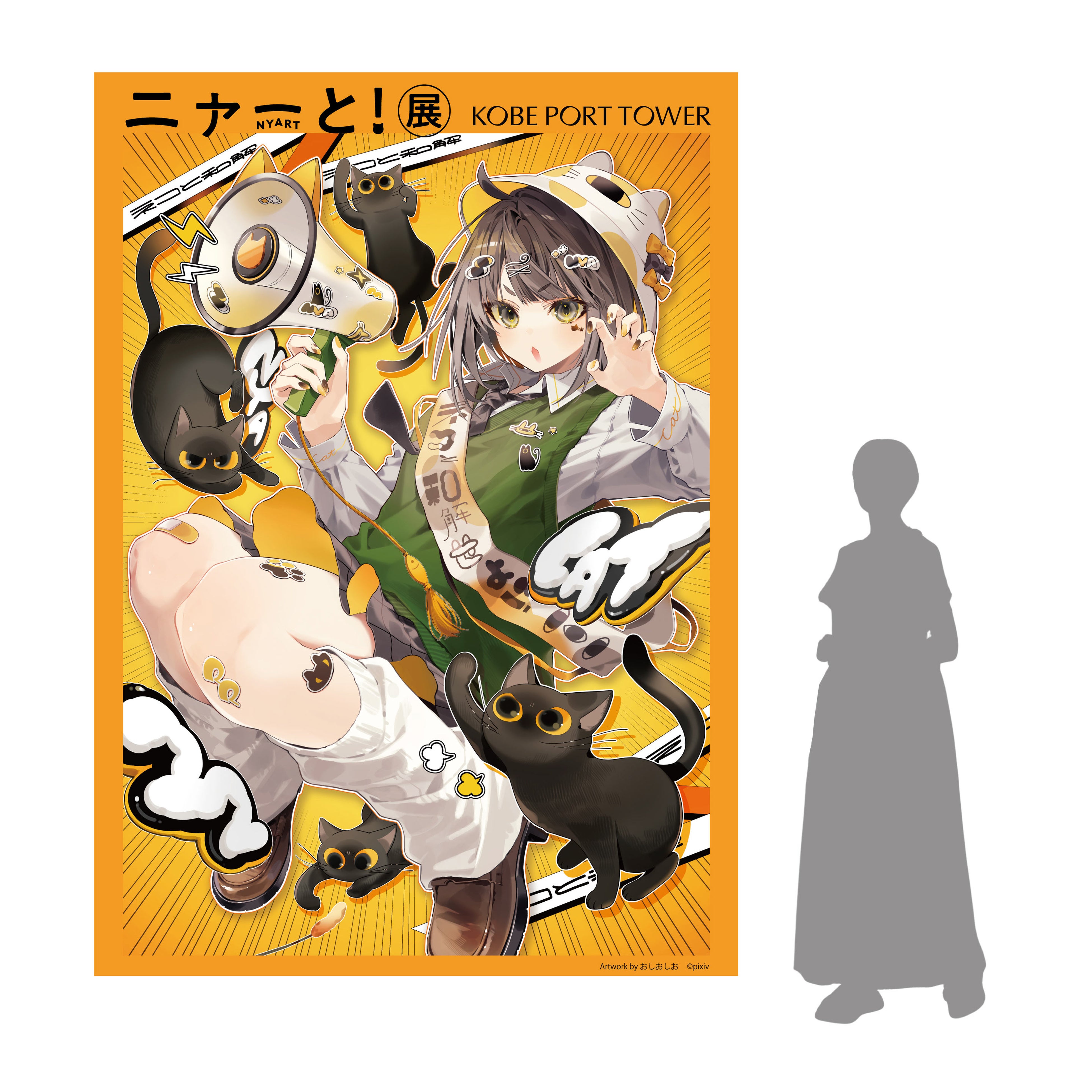 神戸ポートタワー展望5Fの展望室には、おしおしおさんが『ニャーと!展』に寄せたアートが特大タペストリーになって展示されます。記念撮影も自由に楽しめます。