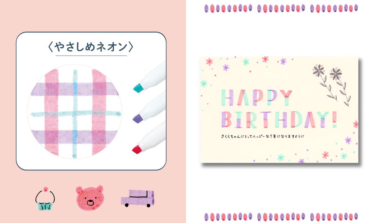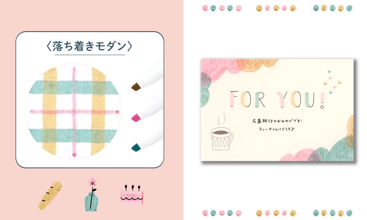 フェリシモが展開する「ミニツク(R)」は、「ほぼ点と線で描ける! ラインマーカーデコを120%楽しむセット」のウェブ販売を9月18日(木)より開始しています。文具好きにも人気のラインマーカー「マイルドライナー」を使って、簡単に手帳やカードなどがデコれるようになるセットです。毎月届くやさしい色合わせがおしゃれな3色セットのラインマーカーを使って、だれでもかわいくアレンジを楽しめます。掲載されているデコアイデアは、色違いのバリエーションも含めるとブックレット1冊あたり70種!点と線だけで簡単に描けるので、絵心に自信がない方でも素敵に仕上がります。クリスマスやバレンタインのメッセージカードを作ったり、手帳を買い替えたりと、何かと「書くこと」が増えるこれからの季節。身近な文具でもっとかわいく、文字やイラストを手軽にアレンジして楽しめるようになる4ヵ月間のセットです。