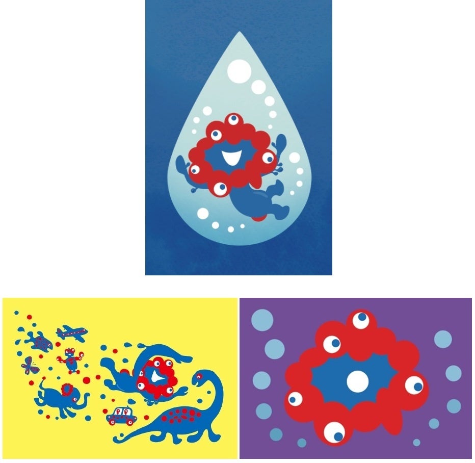 ミャクミャクをデザインした絵本作家・デザイナーの山下浩平氏による絵本『ミャクミャクと… ミャクミャク誕生ものがたり』にて初公開のイラスト
