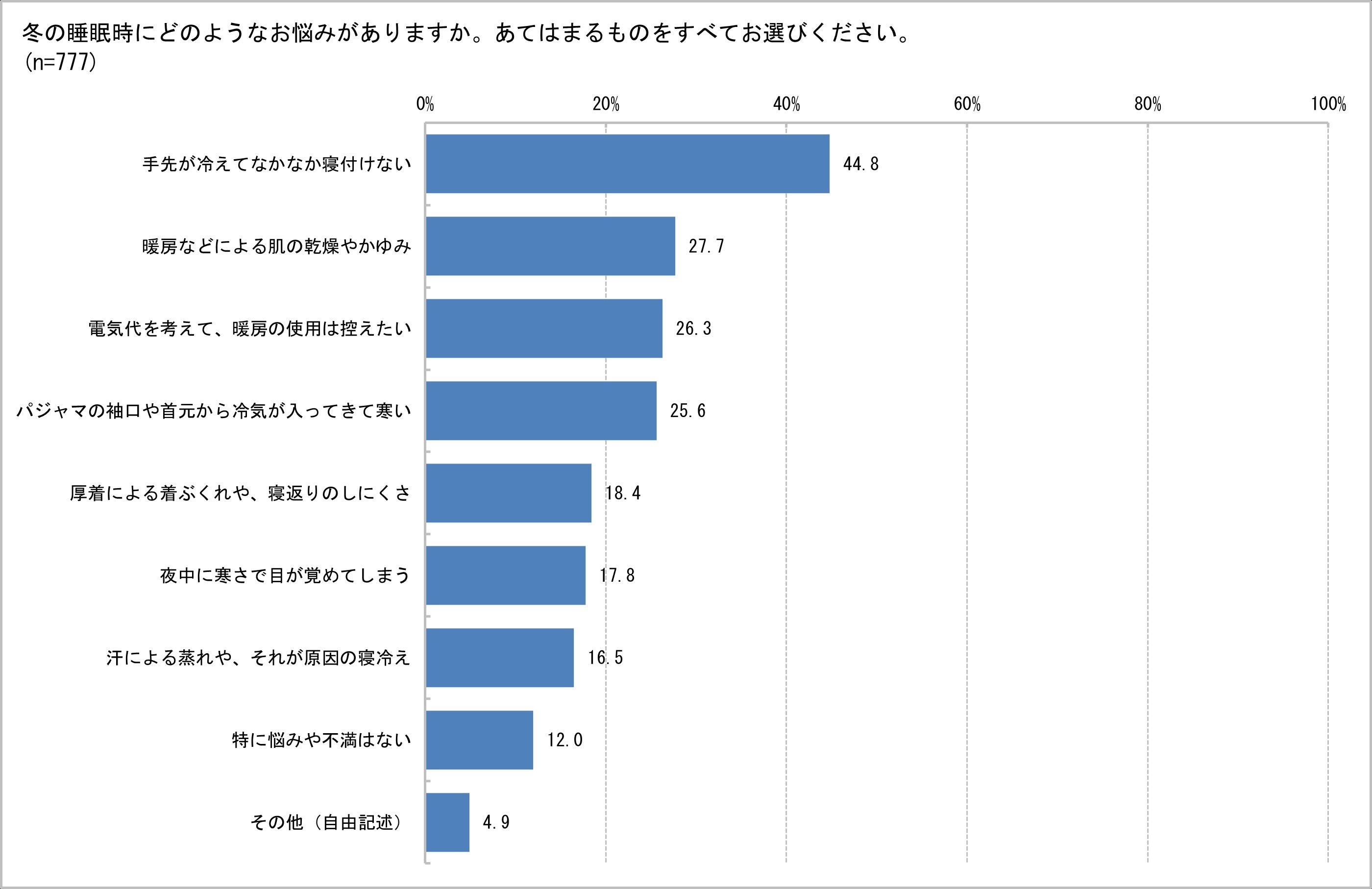▼冬の睡眠時のお悩み1位は「冷え」2位は「肌の乾燥・かゆみ」